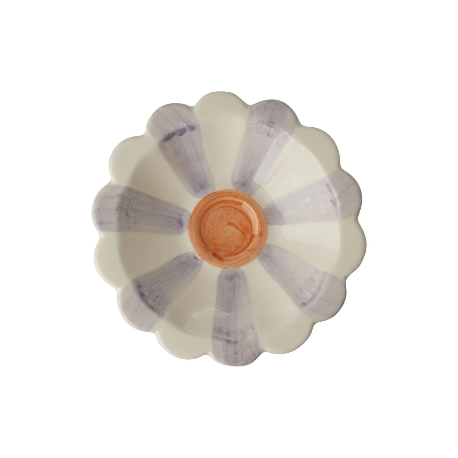 Ceramic Flower Dipping Bowl With Lavender Hand Painted Stripes(Ceramic Flower Dipping Bowl With Lavender Hand Painted Stripes)