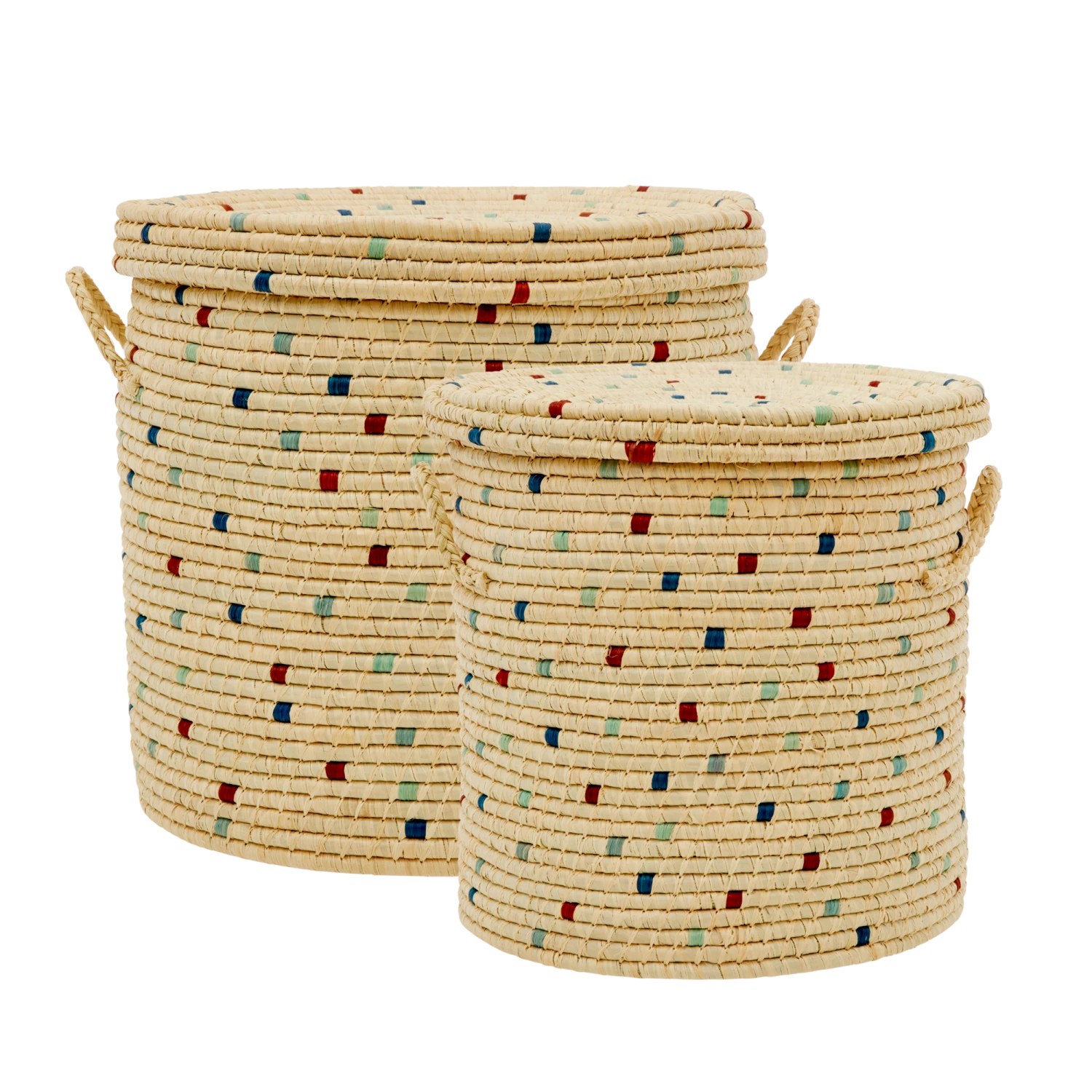This product is handmade in the amazing natural material, raffia. Raffia fibers come from palm fronds and all RICE raffia products come from Madagascar, which is also the place where the history of RICE began. Our raffia baskets and raffia houses were some of our very first products. The production takes place in two villages in the mountains of Madagascar and supports more than 300 families on the Red Island.