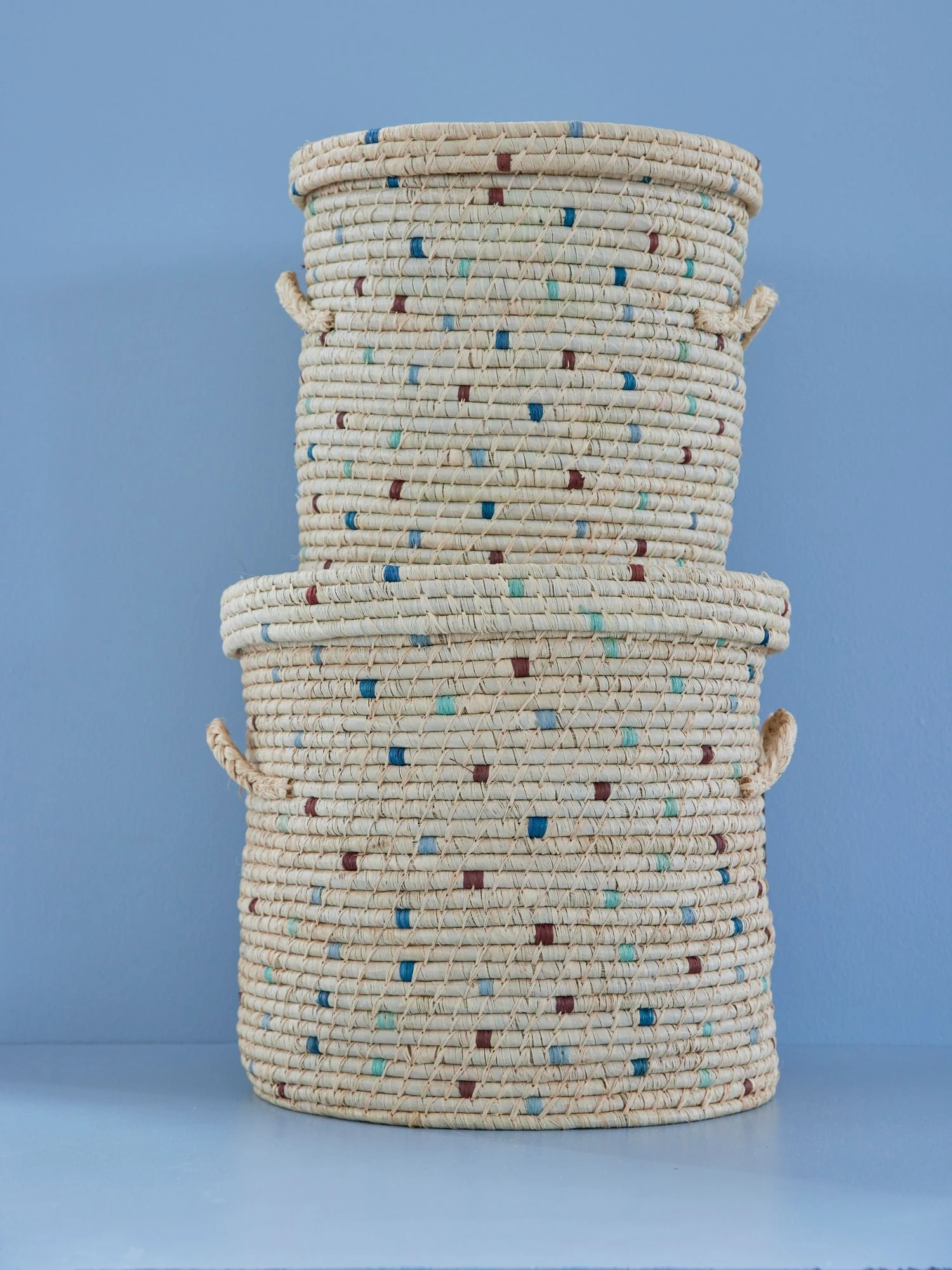Because raffia is a natural material and the products are handmade, each product can vary in size and this variation is reflected in the coloring as well. This means that two products are never quite alike, which we see as part of the charm. If exposed to direct sunlight, the colors will fade over time. The color of the raffia products might rub off if exposed to liquids.