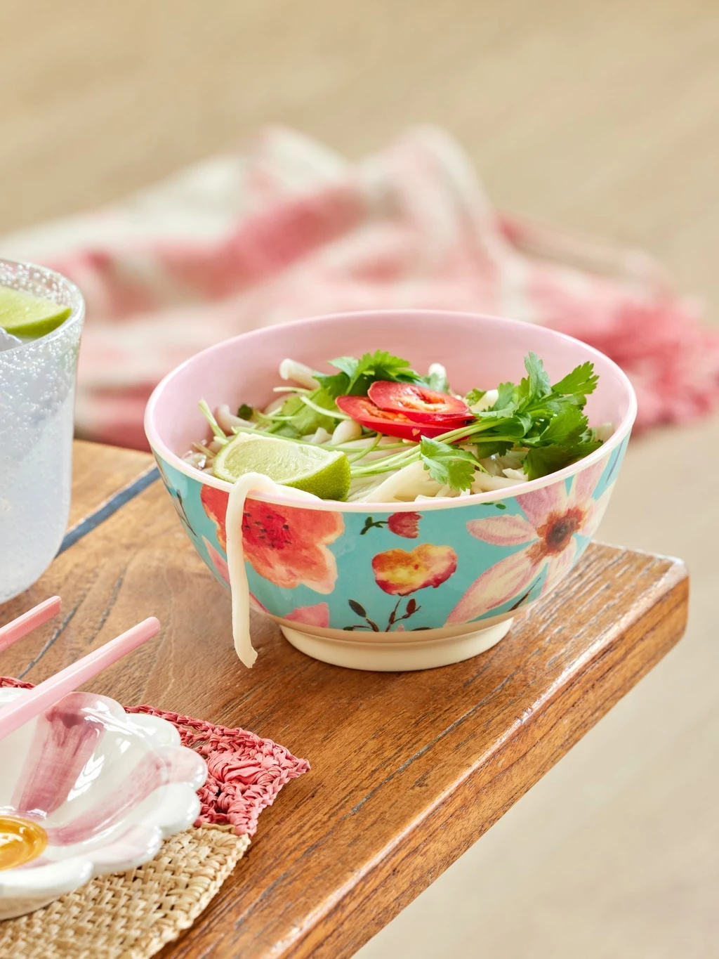 Our popular medium melamine bowl in a mint selma flower print. The bowl is super practical for both kids and adults. It can be used for anything – for breakfast, for soups, for ice creams, for pencils or for picnics. Only your imagination sets the limits. Please note that the products are not suitable for the microwave.