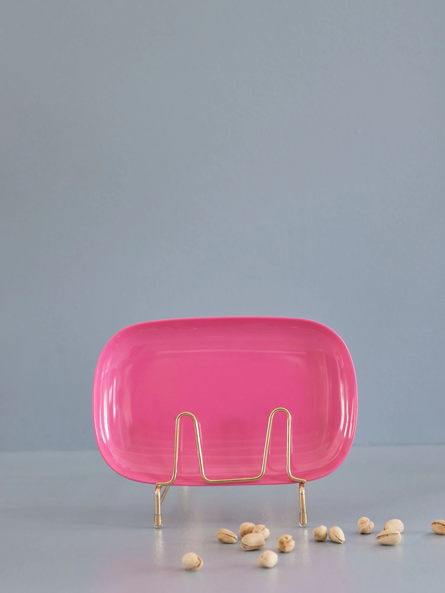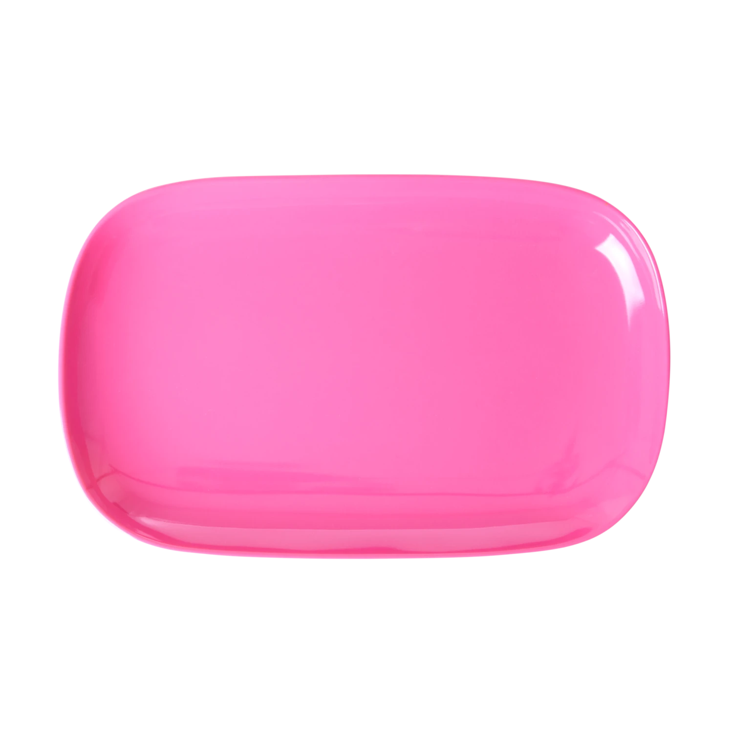 Our medium rectangular melamine plate in solid fuchsia color. It is practical and can be used for almost everything! It can be used as a plate, severing platter and as a tray for candles etc. Please note that the product is not suitable for microwave.