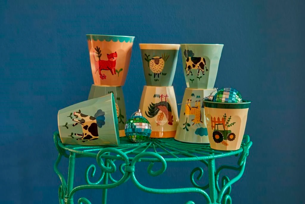 Our popular melamine cups in assorted colors with the sweetest farm print. We call the prints “Blue Farm”. The cup is super practical for both kids and adults. It can be used for anything – to drink, for pencils or for picnics. Only your imagination sets the limits. Please note that the products are not suitable for the microwave.
