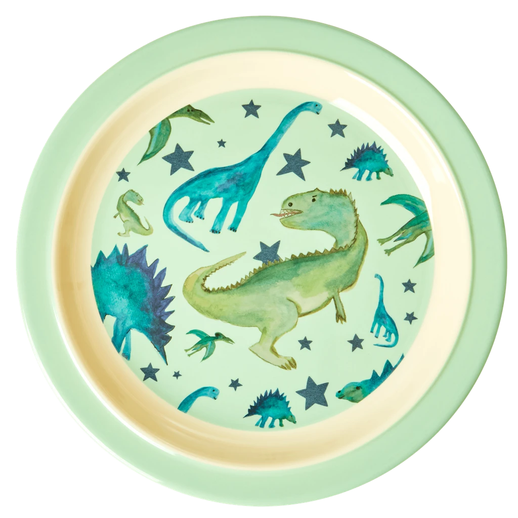 The popular melamine plate for kids with a wild dinosaurs on a light green background. The plate has a practical edge that helps the food to stay on the plate. It is a perfect fit for every meal…