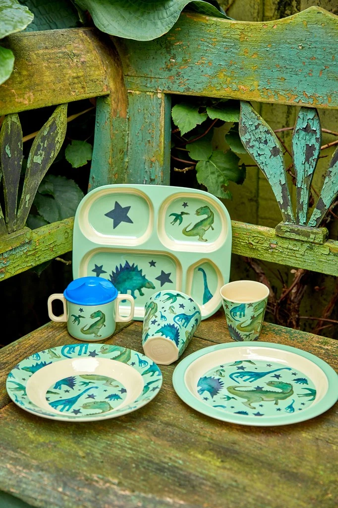 This RICE lunch plate is made of melamine – a practical, strong, and durable material that is great for kids. This cool dinosaur print is also available as a small cup, baby cup with sippy-lid, bowl, and cutlery. If you (like us) are in love with cute and practical kids items, be sure to check out all the other great products in our big kids selection… we have a lot of prints and colors to choose from! At RICE we spend a lot of resources staying on top of the latest rules and regulations regarding food safety and sustainability. RICE melamine products intended for food and beverages are tested food safe and are approved by DVFA. We make sure our melamine is of the highest quality, reusable and free of bisphenol A and phthalates – we love this material and the many possibilities it holds… pretty, practical, long-lasting, and can even go in the dishwasher. Please note, melamine products are not suitable for the microwave. Identify your RICE melamine products by the RICE hologram sticker to make sure you get the original RICE quality! This product is approved for children under the age of 3. You can always find more information about our materials under “Experience RICE” & “Product information”. *Product information may be subject to errors, changes, or sold out items.
