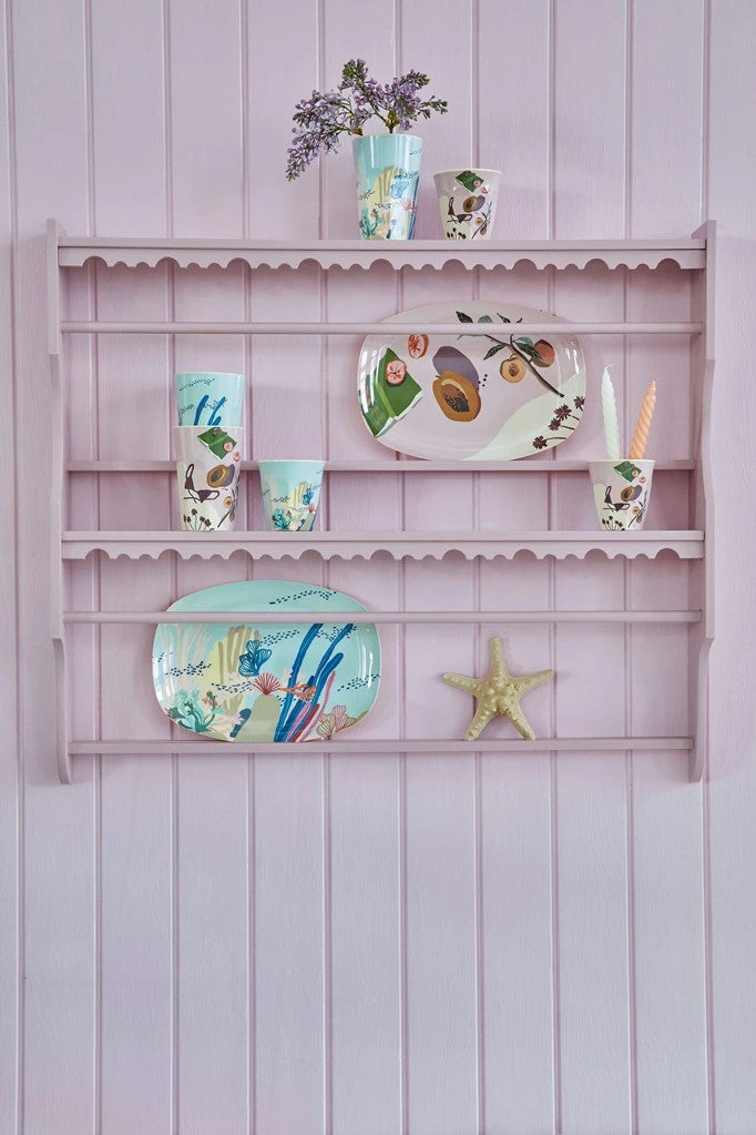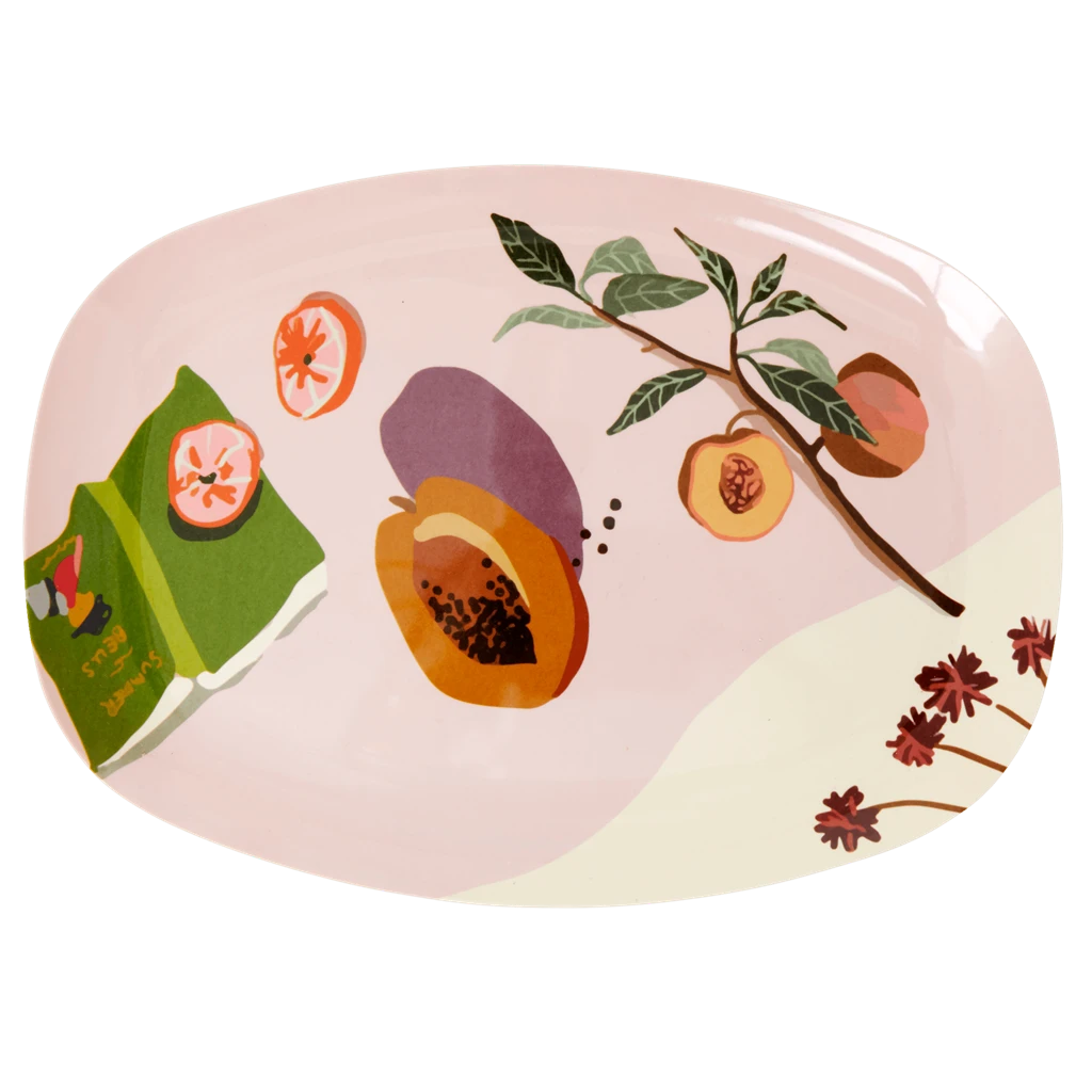 The classic rectangular melamine plate with the beautiful ‘Australian Summer’ print. The print is designed by Australian artist Charlie Bennell. This plate is unique in both shape and print – and practical to use both in- and outdoors. Spacious and easy to use for anything… As a serving platter, dining platter or as tray for candles etc. Use it as you see fit!