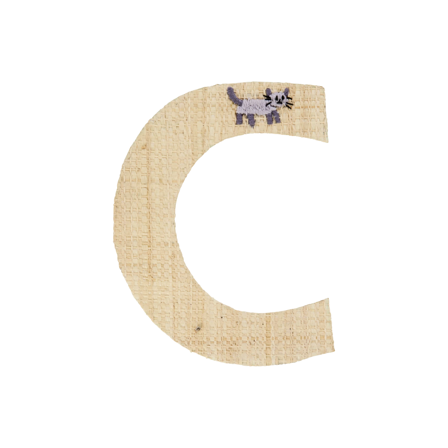 Super cute C in natural colored raffia with a small, embroidered cat. Our raffia letters have a sticky backside, so you can hang them anywhere you want… doors, closets or even raffia baskets! Mix and match the letters and write whatever you want… or assign each family member their own basket in the hallway – the sky is the limit. The letters are handmade from the natural and sustainable material raffia, so you will never find two identical letters – isn’t that just charming?!