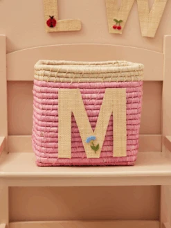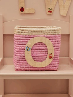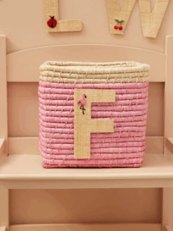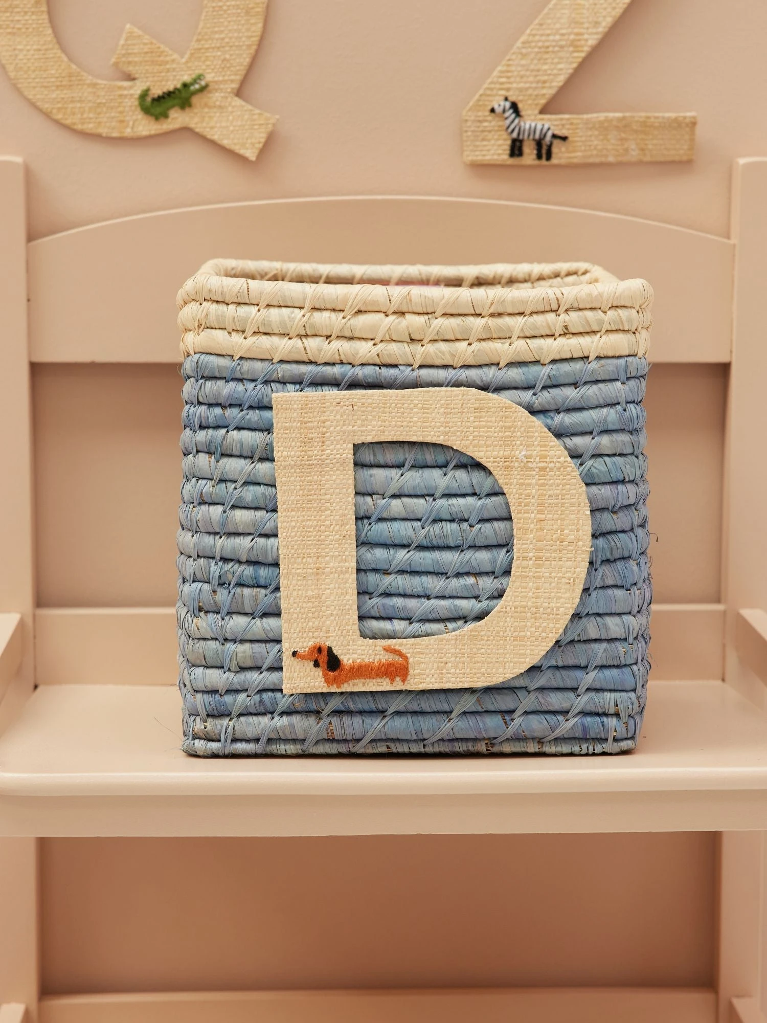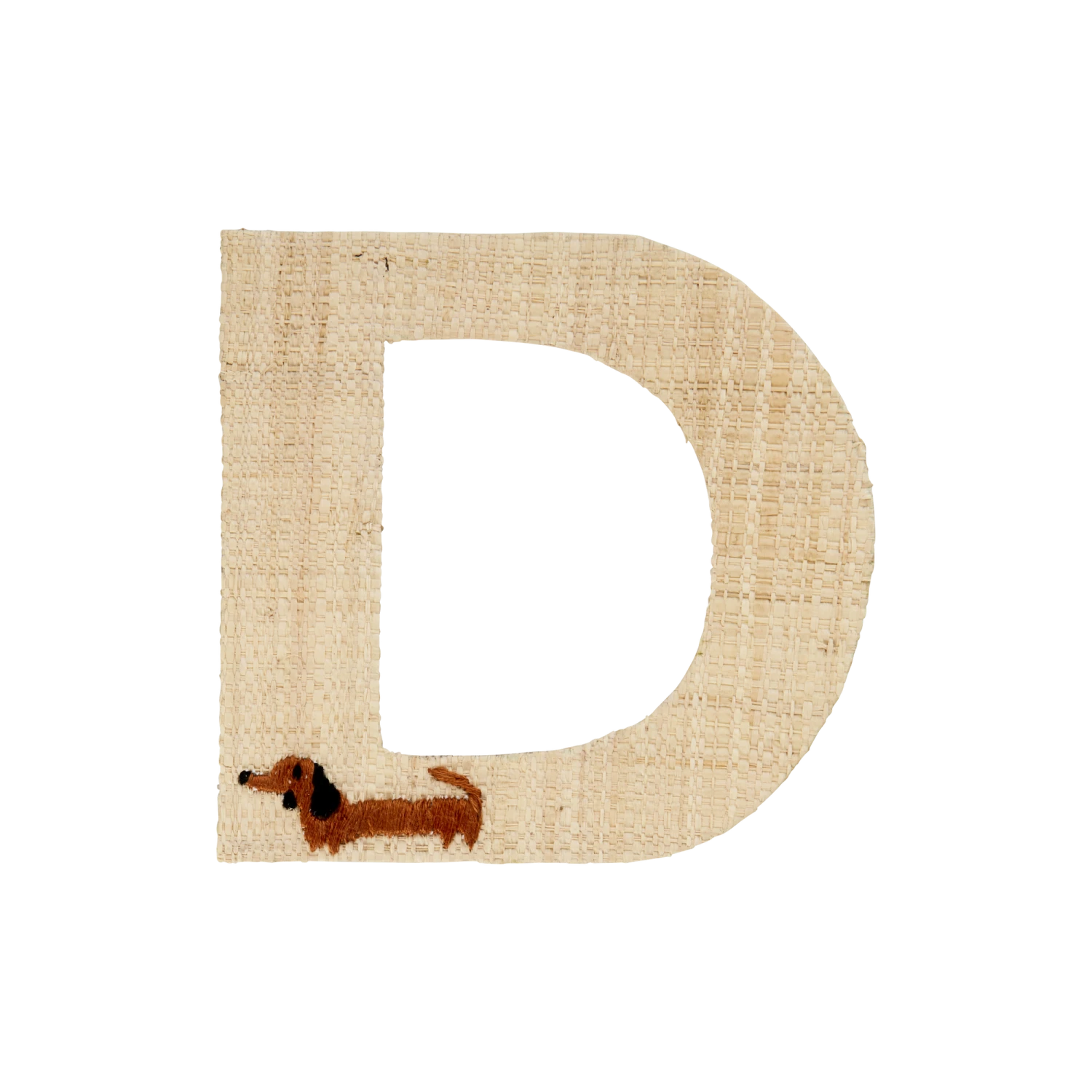Super cute D in natural colored raffia with a small, embroidered dachshund. Our raffia letters have a sticky backside, so you can hang them anywhere you want… doors, closets or even raffia baskets! Mix and match the letters and write whatever you want… or assign each family member their own basket in the hallway – the sky is the limit. The letters are handmade from the natural and sustainable material raffia, so you will never find two identical letters – isn’t that just charming?!