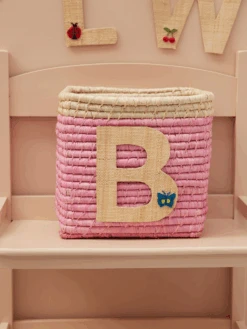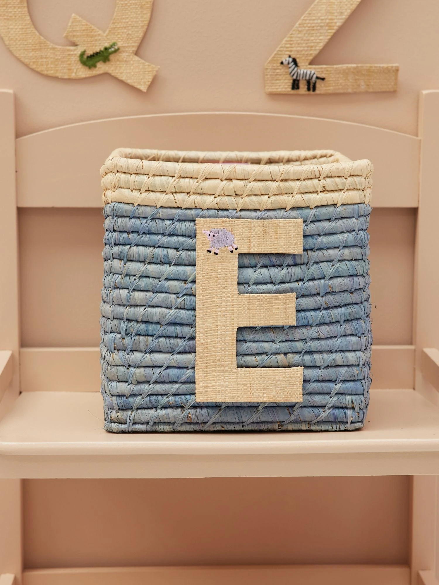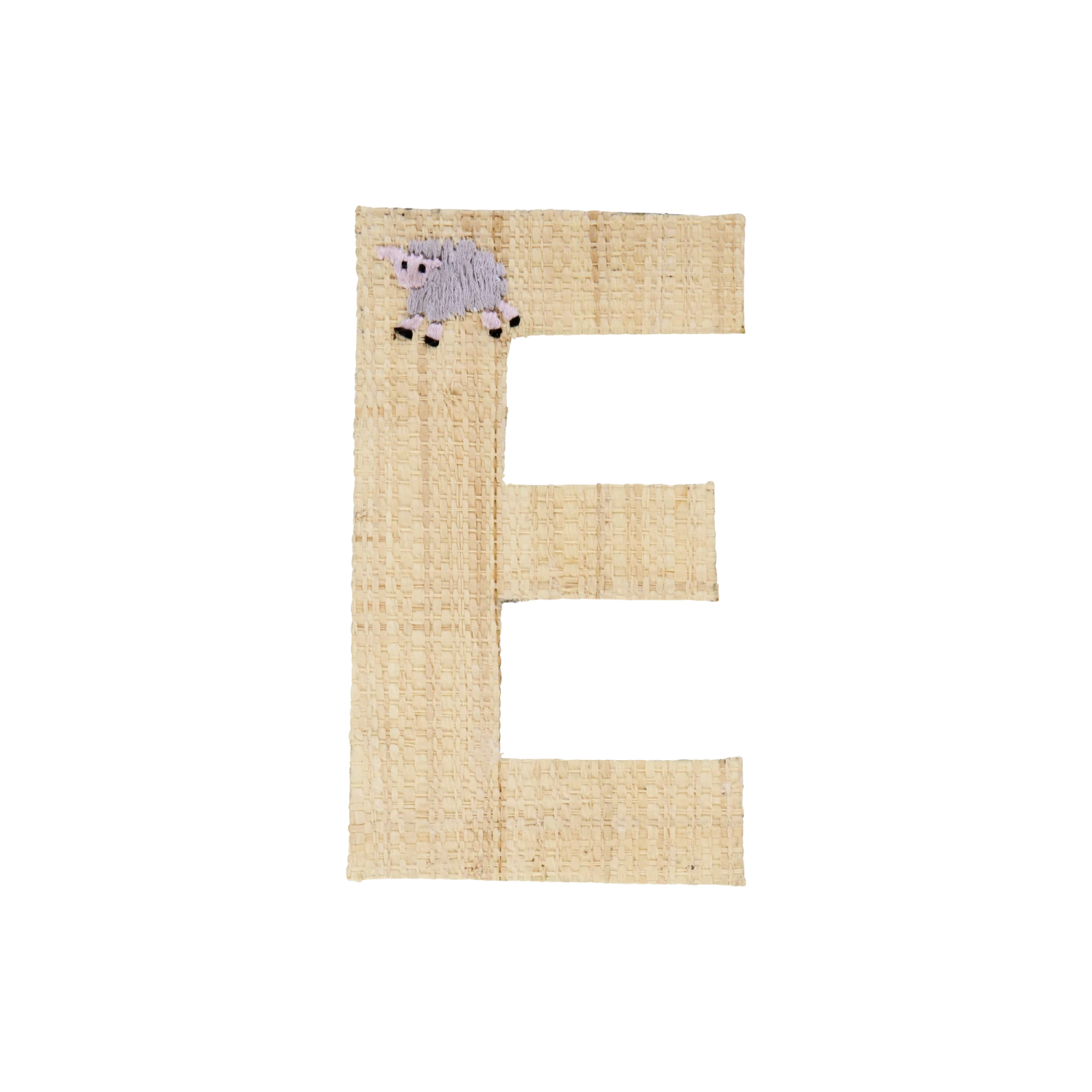 Super cute E in natural colored raffia with a small, embroidered sheep. Our raffia letters have a sticky backside, so you can hang them anywhere you want… doors, closets or even raffia baskets! Mix and match the letters and write whatever you want… or assign each family member their own basket in the hallway – the sky is the limit. The letters are handmade from the natural and sustainable material raffia, so you will never find two identical letters – isn’t that just charming?!