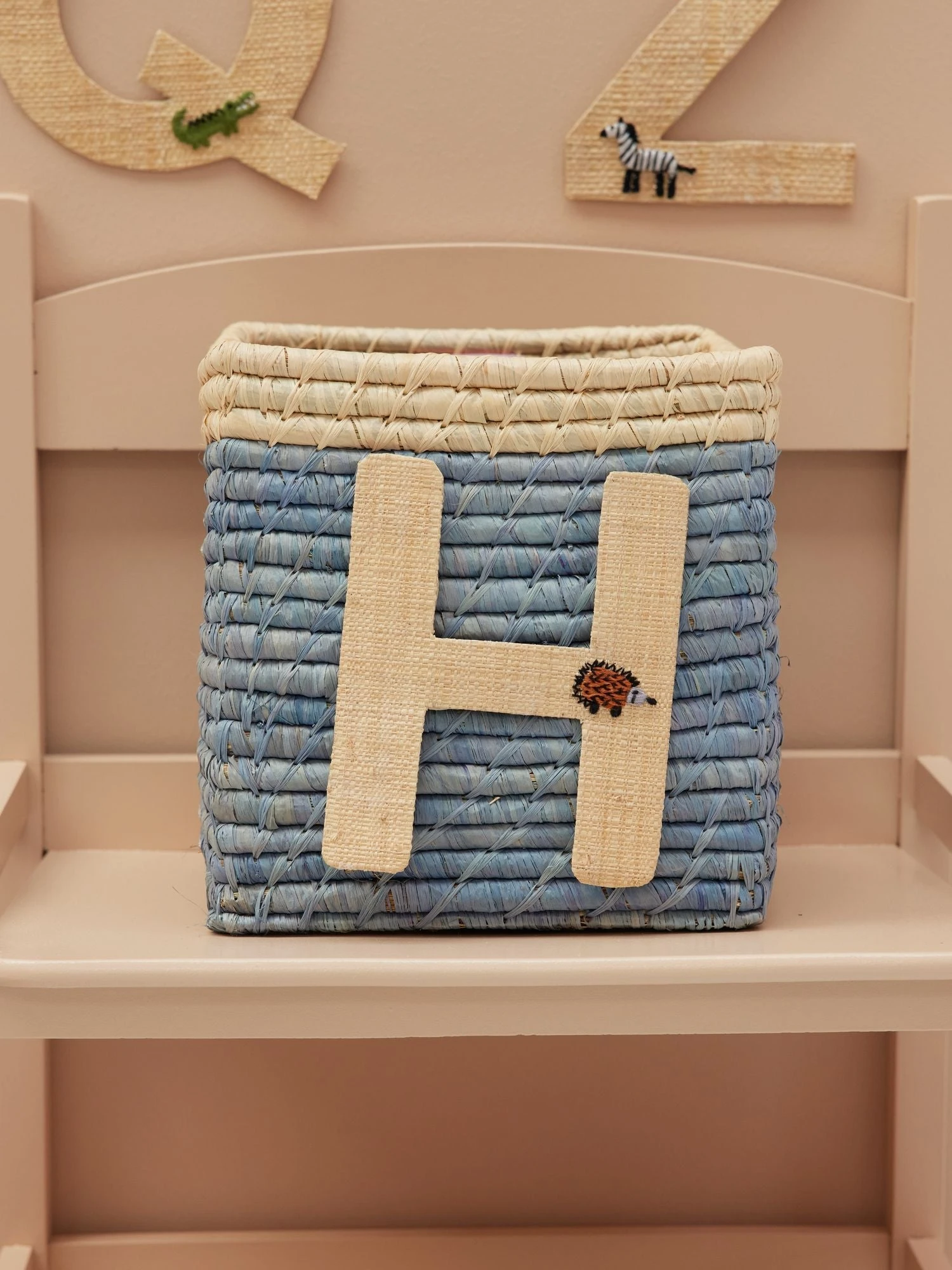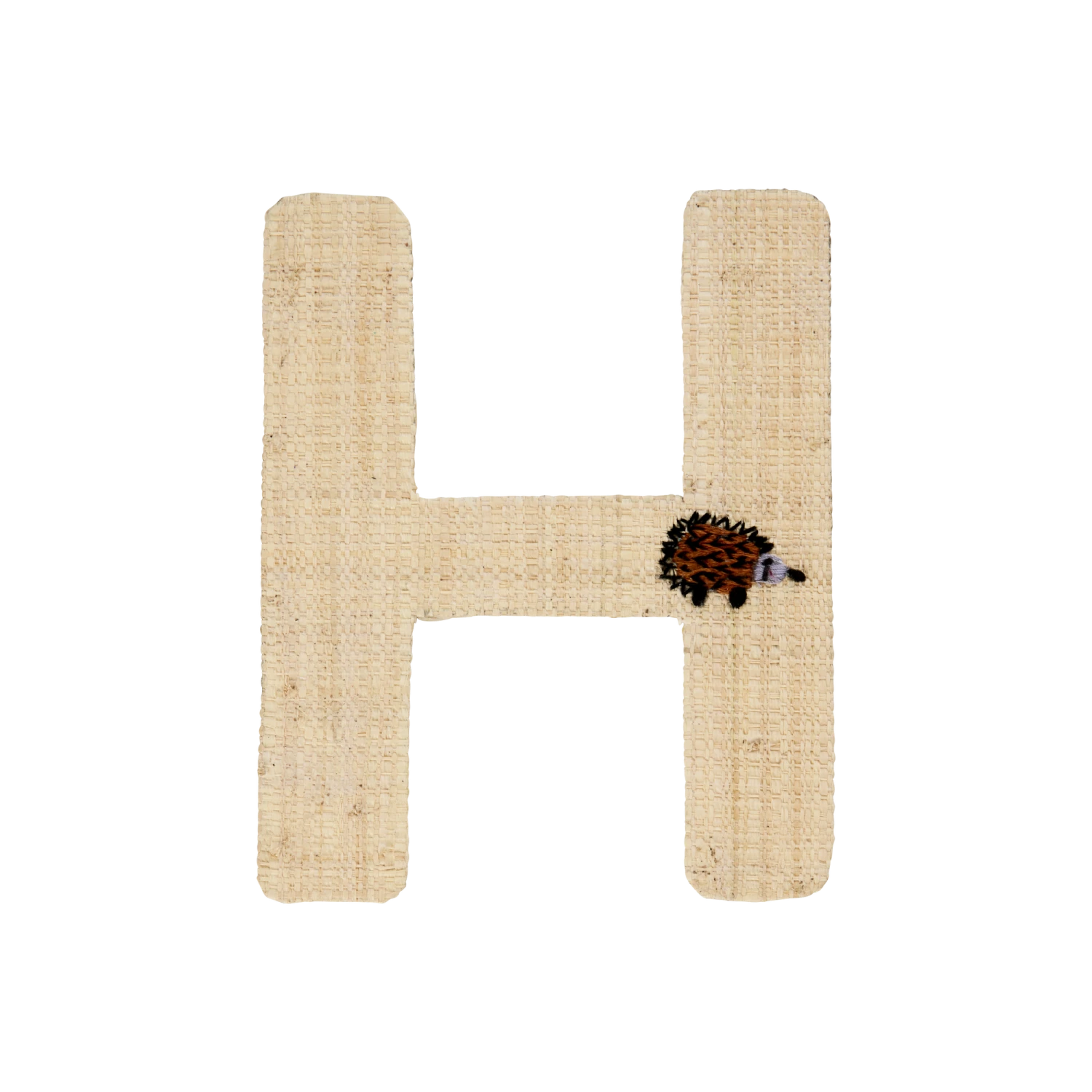 Super cute H in natural colored raffia with a small, embroidered pocurpine. Our raffia letters have a sticky backside, so you can hang them anywhere you want… doors, closets or even raffia baskets! Mix and match the letters and write whatever you want… or assign each family member their own basket in the hallway – the sky is the limit. The letters are handmade from the natural and sustainable material raffia, so you will never find two identical letters – isn’t that just charming?!