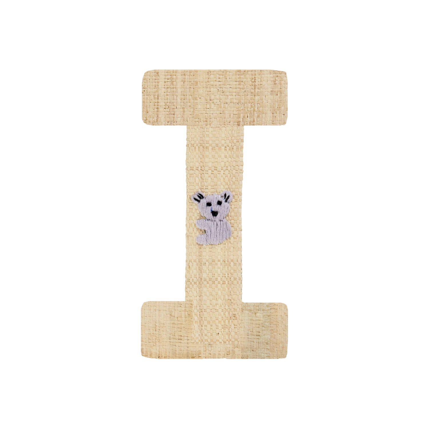 Super cute I in natural colored raffia with a small, embroidered koala bear. Our raffia letters have a sticky backside, so you can hang them anywhere you want… doors, closets or even raffia baskets! Mix and match the letters and write whatever you want… or assign each family member their own basket in the hallway – the sky is the limit. The letters are handmade from the natural and sustainable material raffia, so you will never find two identical letters – isn’t that just charming?!