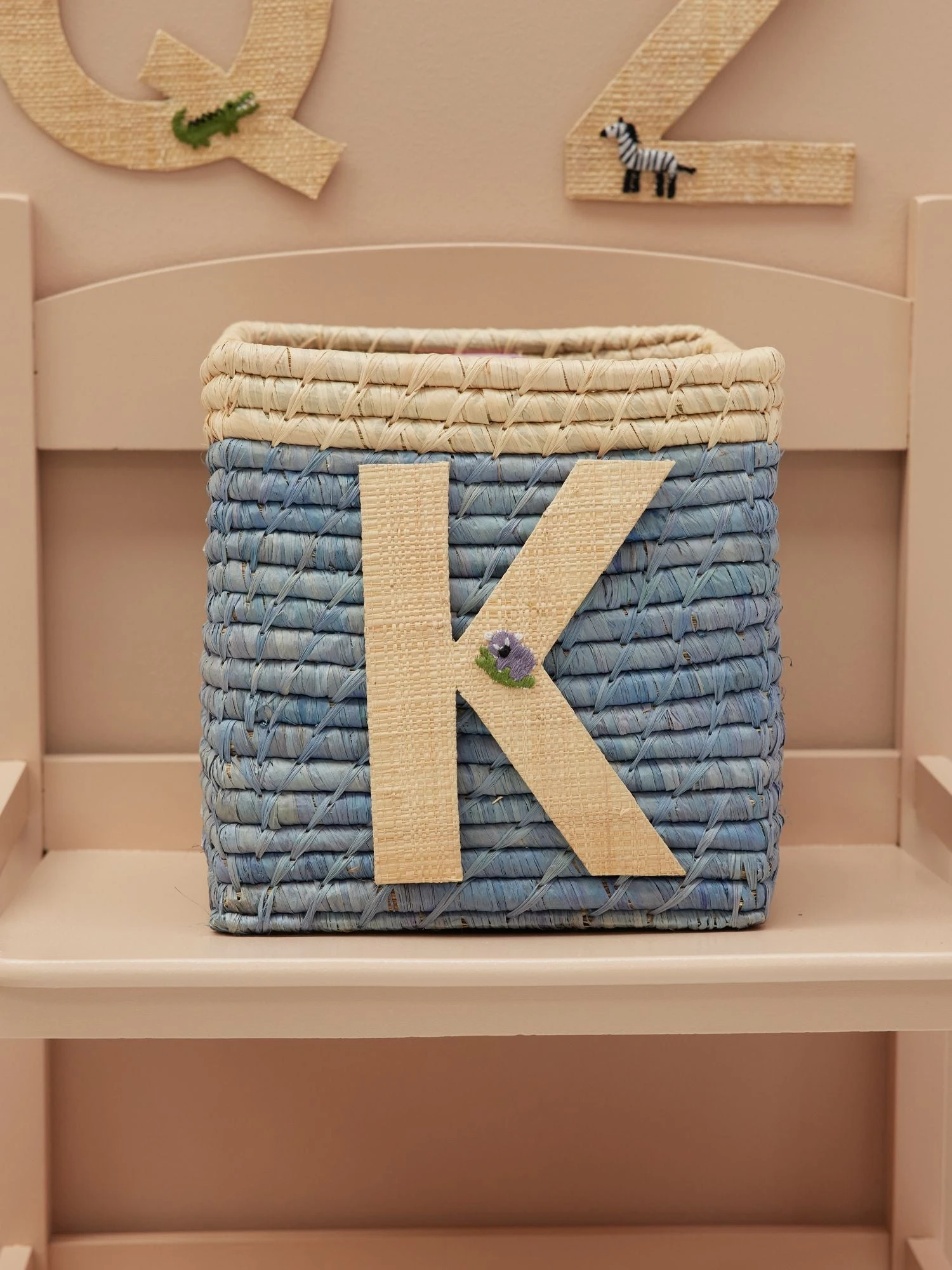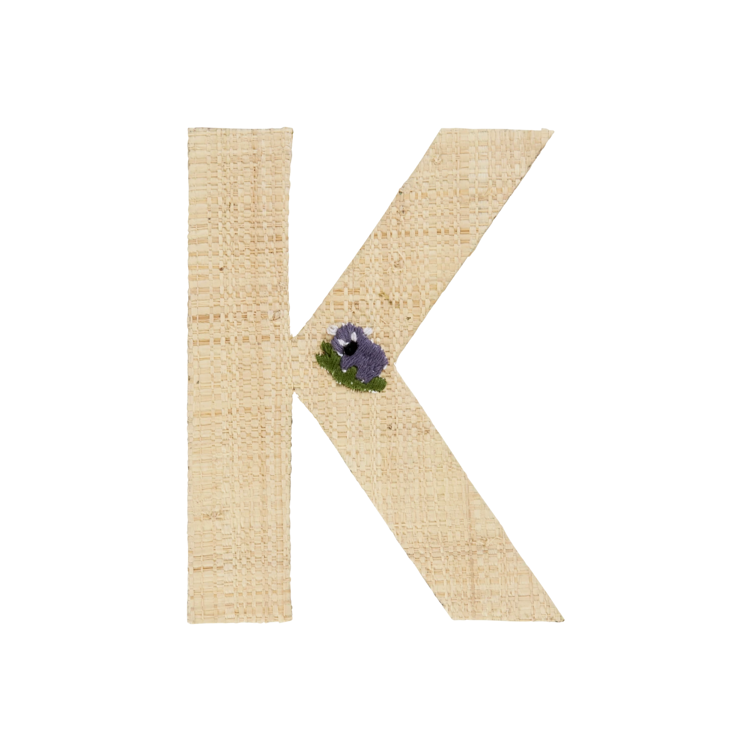 Super cute K in natural colored raffia with a small, embroidered koala bear. Our raffia letters have a sticky backside, so you can hang them anywhere you want… doors, closets or even raffia baskets! Mix and match the letters and write whatever you want… or assign each family member their own basket in the hallway – the sky is the limit. The letters are handmade from the natural and sustainable material raffia, so you will never find two identical letters – isn’t that just charming?!
