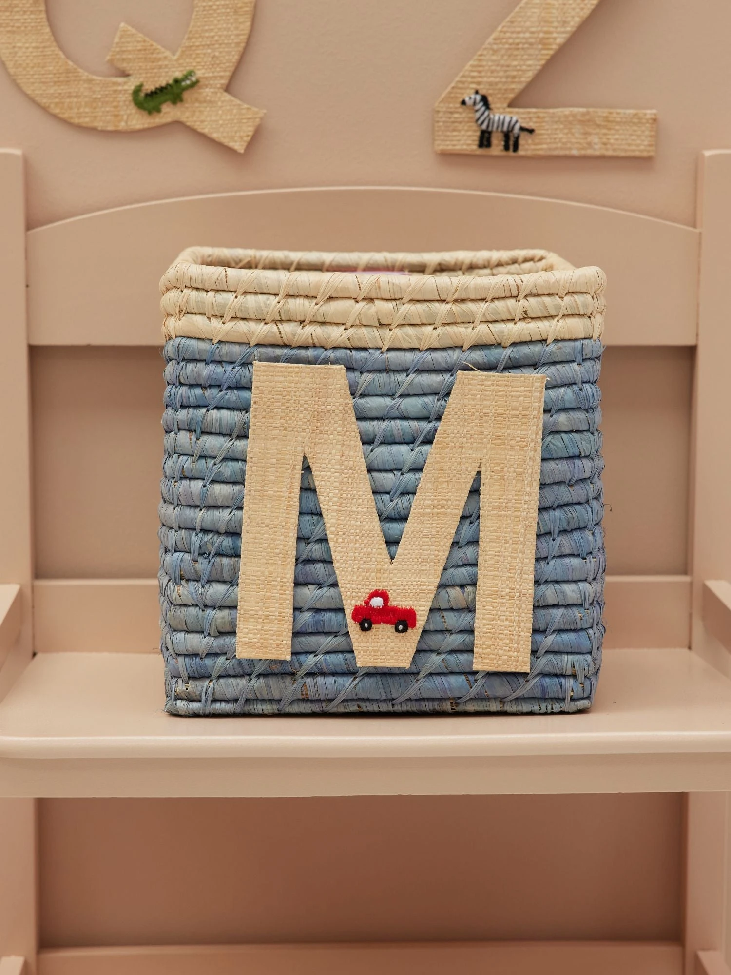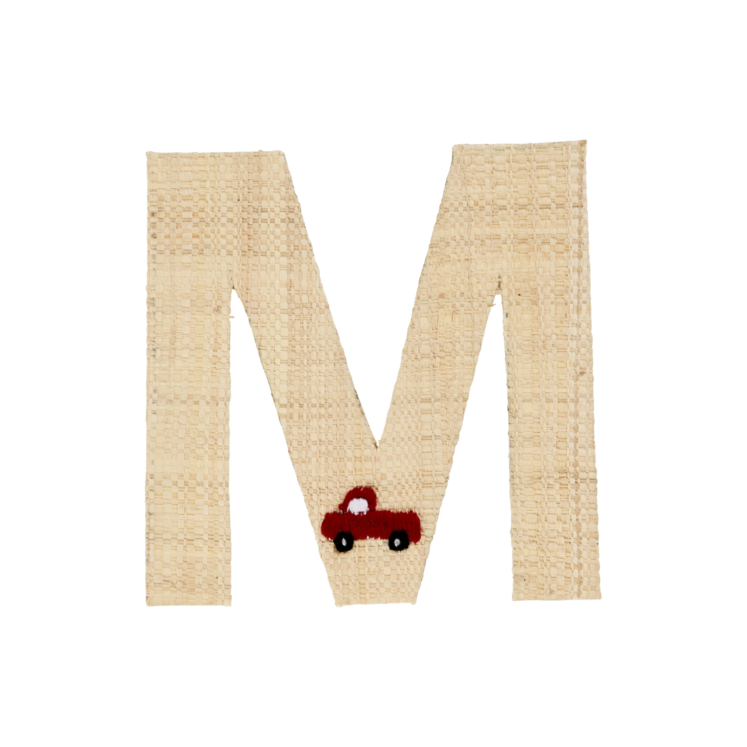 Super cute M in natural colored raffia with a small, embroidered van. Our raffia letters have a sticky backside, so you can hang them anywhere you want… doors, closets or even raffia baskets! Mix and match the letters and write whatever you want… or assign each family member their own basket in the hallway – the sky is the limit. The letters are handmade from the natural and sustainable material raffia, so you will never find two identical letters – isn’t that just charming?!
