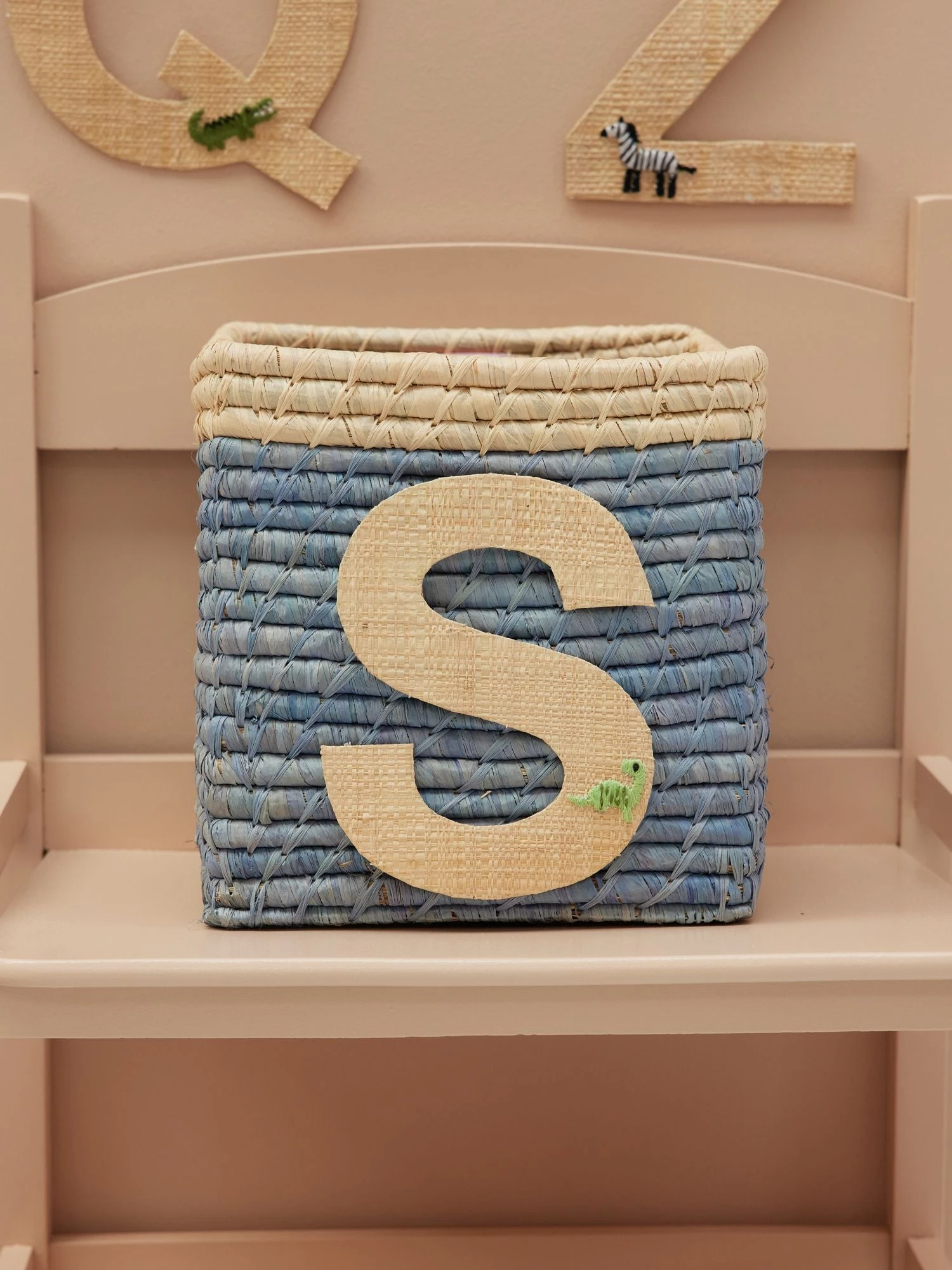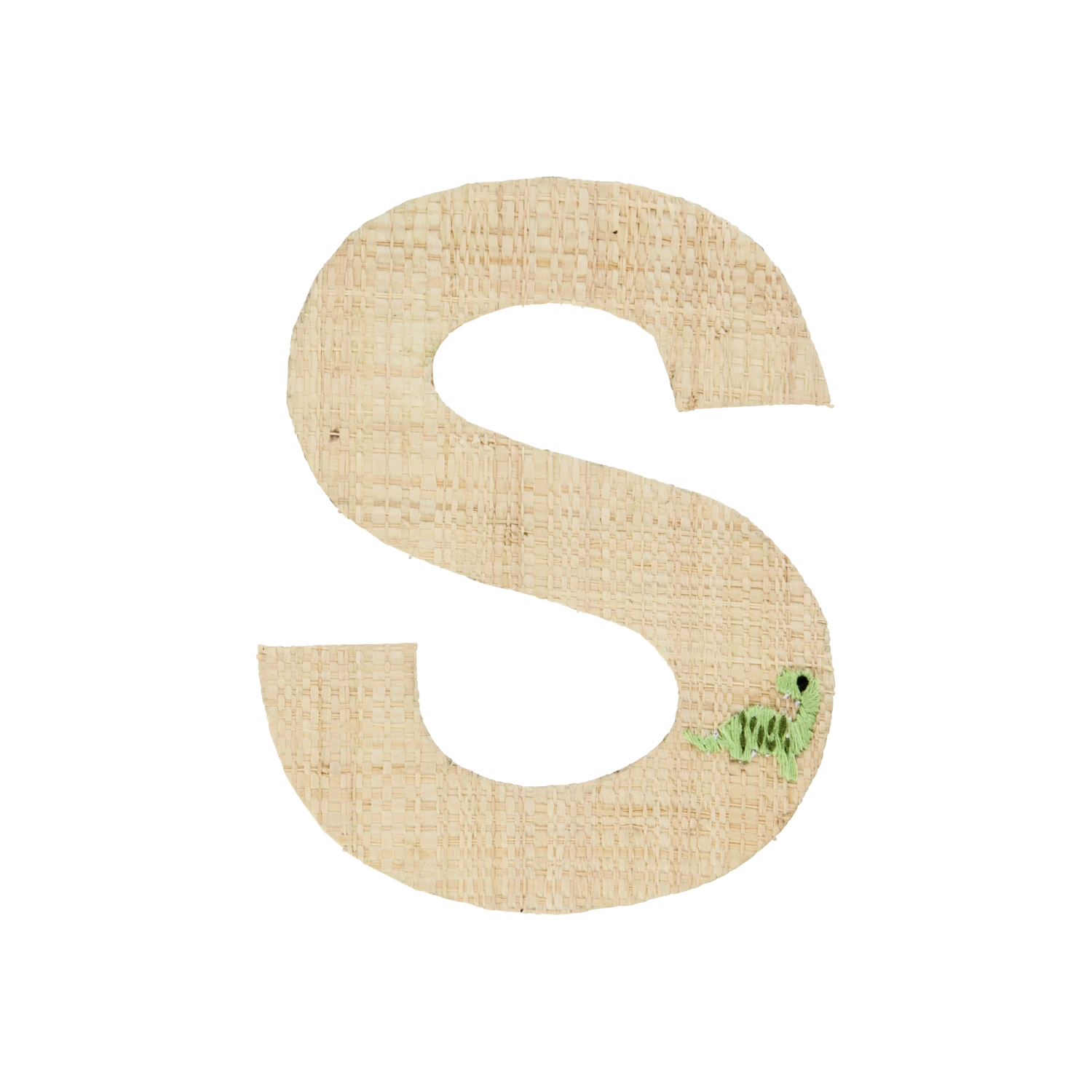 Super cute S in natural colored raffia with a small, embroidered dinosaur. Our raffia letters have a sticky backside, so you can hang them anywhere you want… doors, closets or even raffia baskets! Mix and match the letters and write whatever you want… or assign each family member their own basket in the hallway – the sky is the limit. The letters are handmade from the natural and sustainable material raffia, so you will never find two identical letters – isn’t that just charming?!