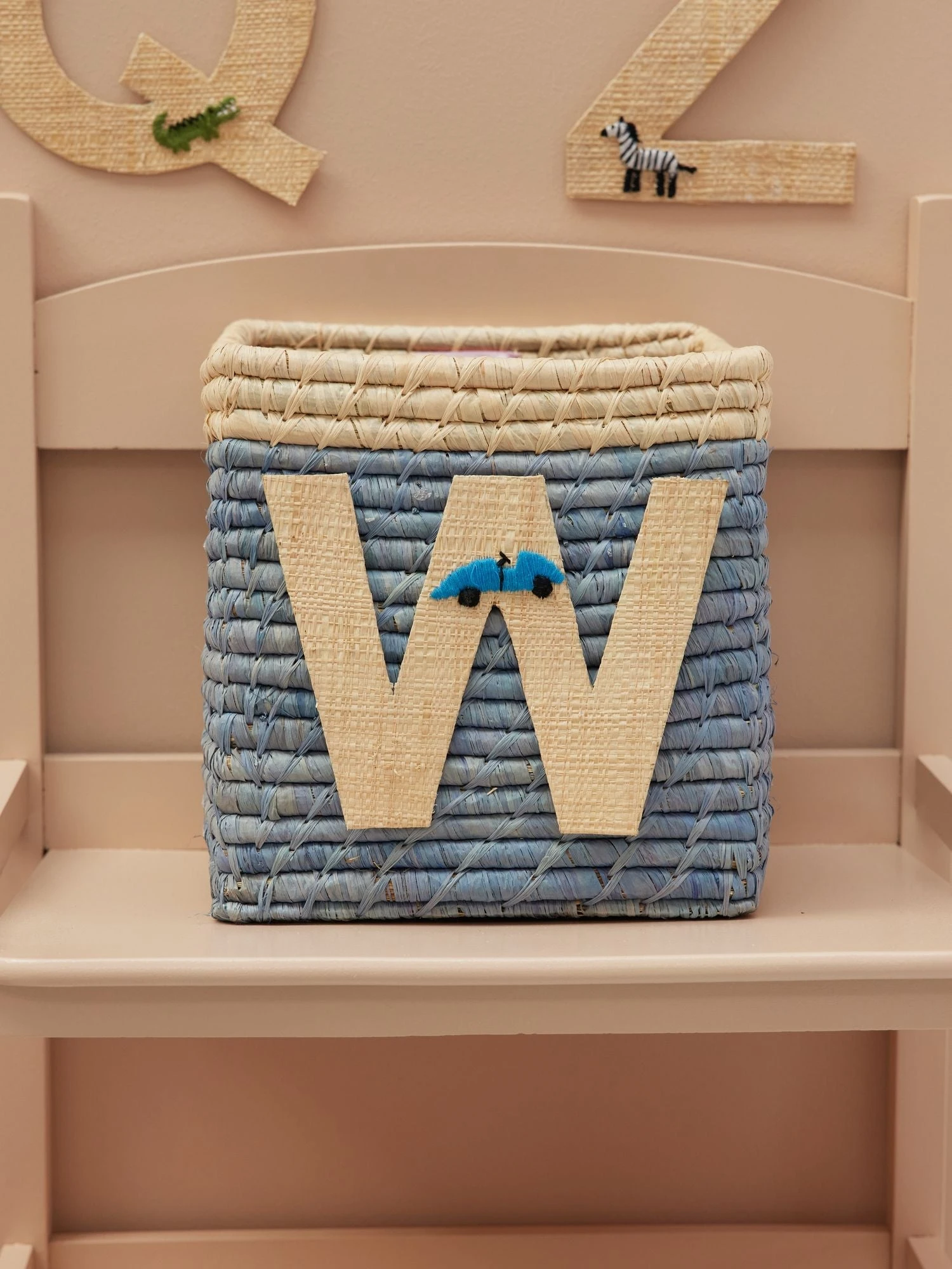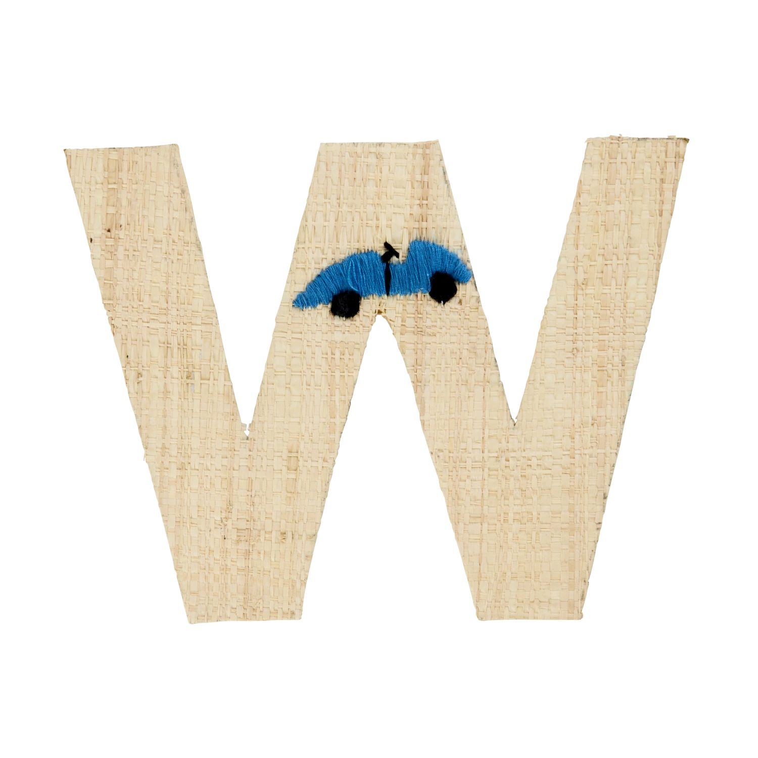 Super cute W in natural colored raffia with a small, embroidered car. Our raffia letters have a sticky backside, so you can hang them anywhere you want… doors, closets or even raffia baskets! Mix and match the letters and write whatever you want… or assign each family member their own basket in the hallway – the sky is the limit. The letters are handmade from the natural and sustainable material raffia, so you will never find two identical letters – isn’t that just charming?!