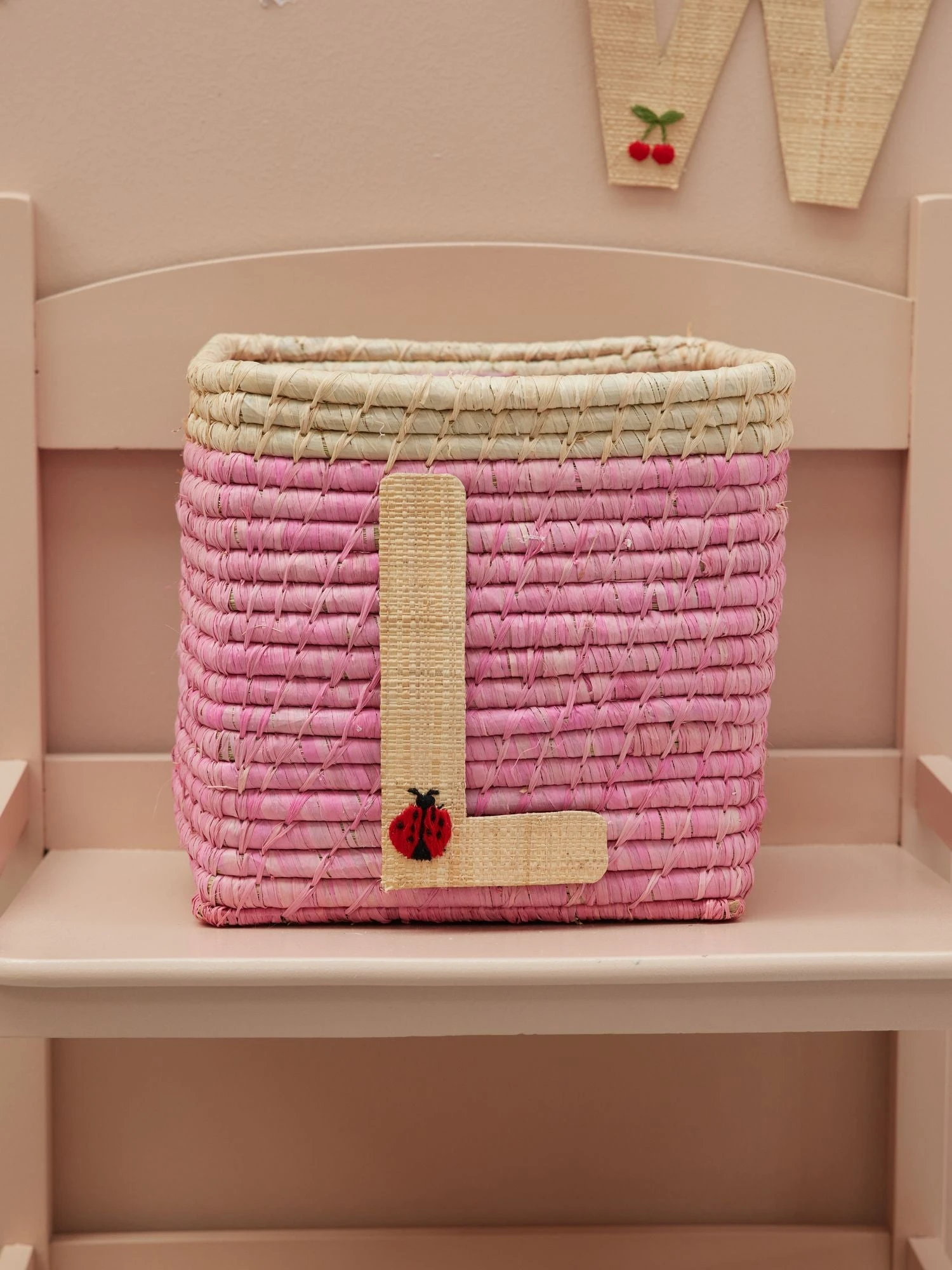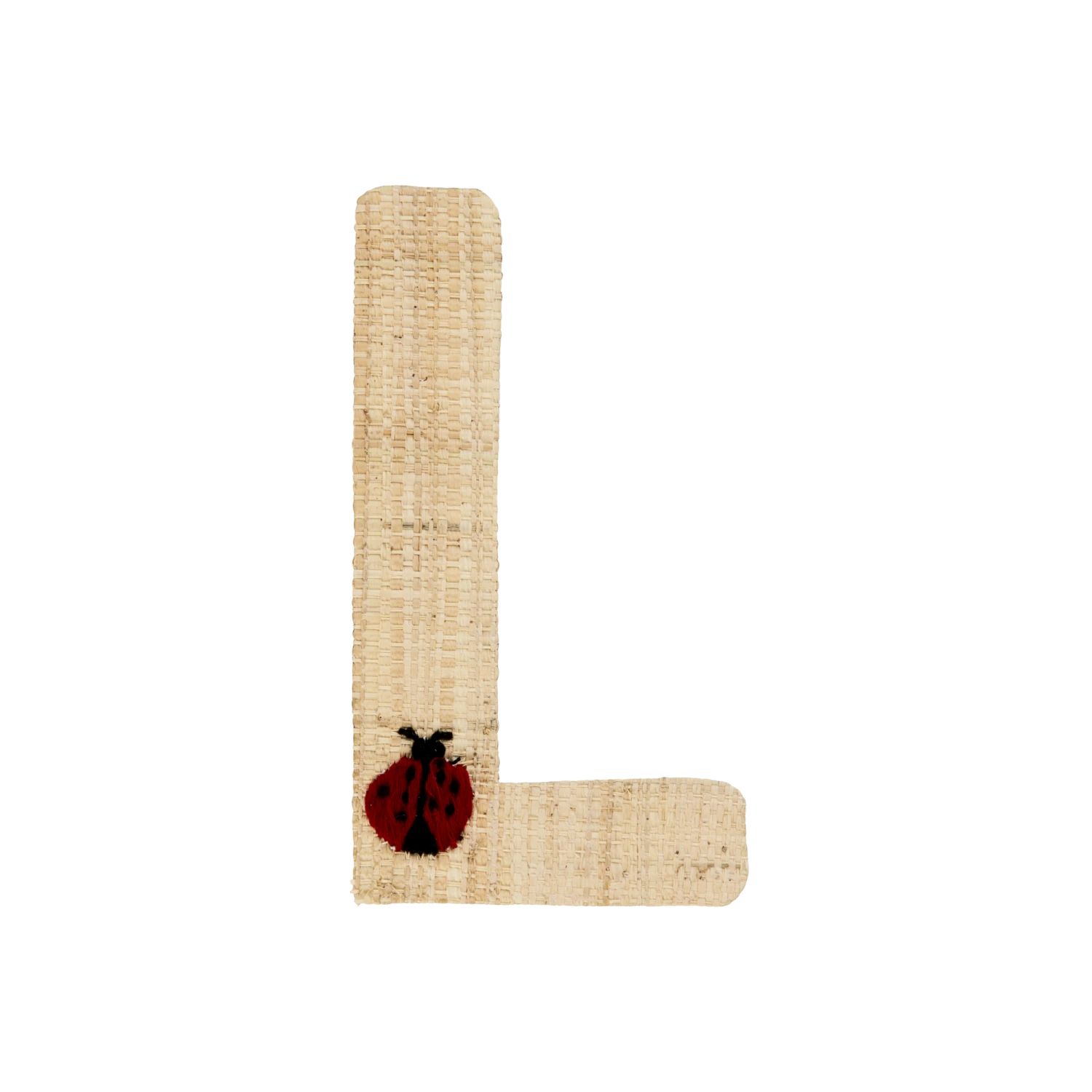 Super cute L in natural colored raffia with a small, embroidered lady bug. Our raffia letters have a sticky backside, so you can hang them anywhere you want… doors, closets or even raffia baskets! Mix and match the letters and write whatever you want… or assign each family member their own basket in the hallway – the sky is the limit. The letters are handmade from the natural and sustainable material raffia, so you will never find two identical letters – isn’t that just charming?!