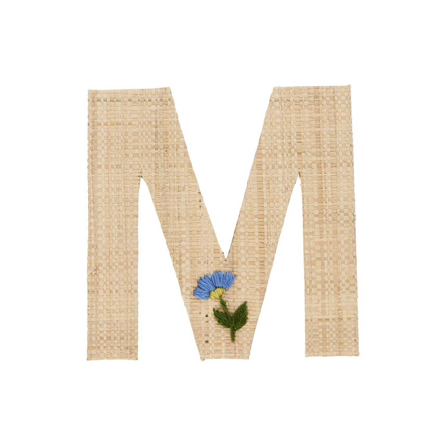Super cute M in natural colored raffia with a small, embroidered flower. Our raffia letters have a sticky backside, so you can hang them anywhere you want… doors, closets or even raffia baskets! Mix and match the letters and write whatever you want… or assign each family member their own basket in the hallway – the sky is the limit. The letters are handmade from the natural and sustainable material raffia, so you will never find two identical letters – isn’t that just charming?!