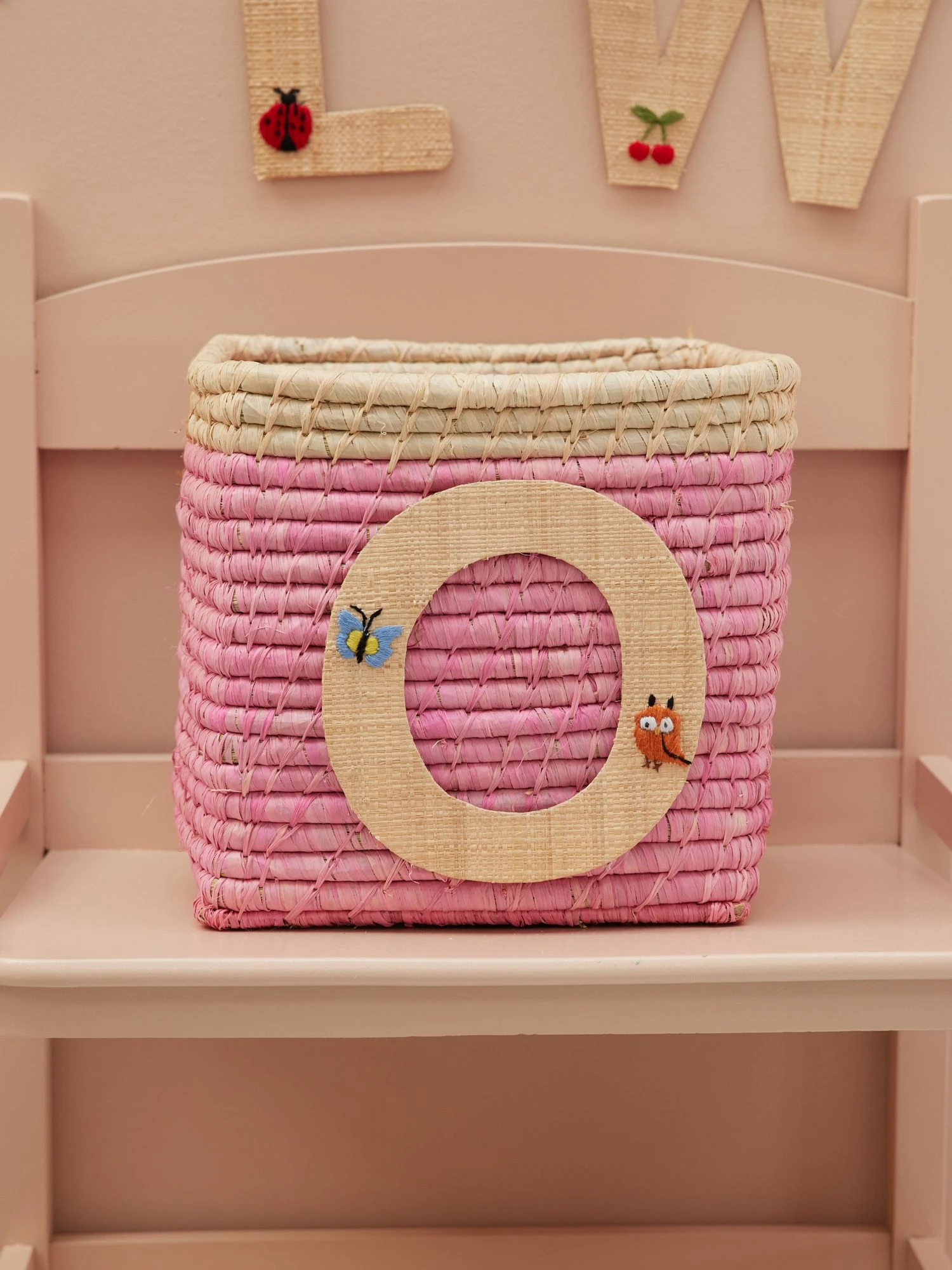 Super cute O in natural colored raffia with a small, embroidered owl. Our raffia letters have a sticky backside, so you can hang them anywhere you want… doors, closets or even raffia baskets! Mix and match the letters and write whatever you want… or assign each family member their own basket in the hallway – the sky is the limit. The letters are handmade from the natural and sustainable material raffia, so you will never find two identical letters – isn’t that just charming?!
