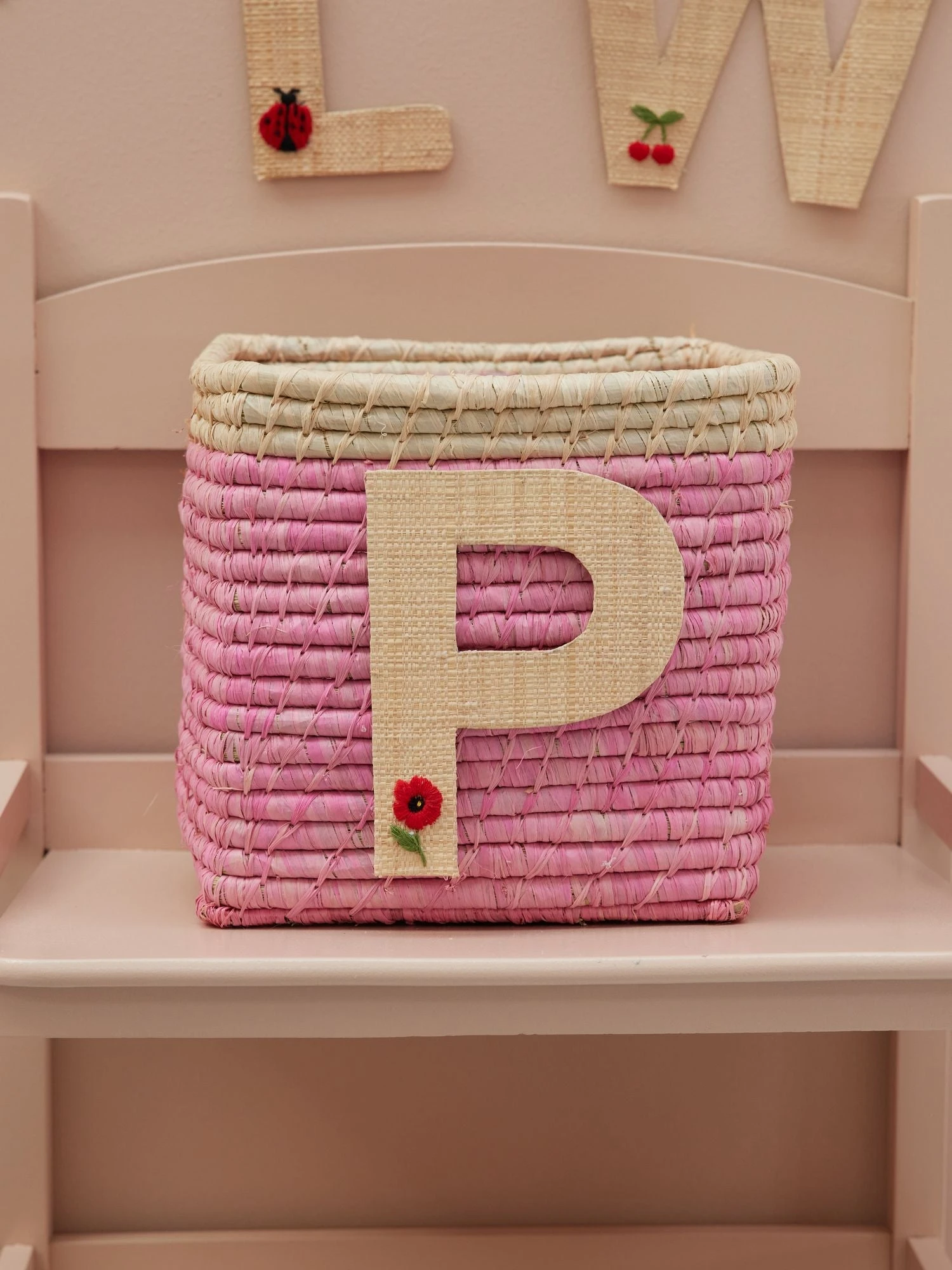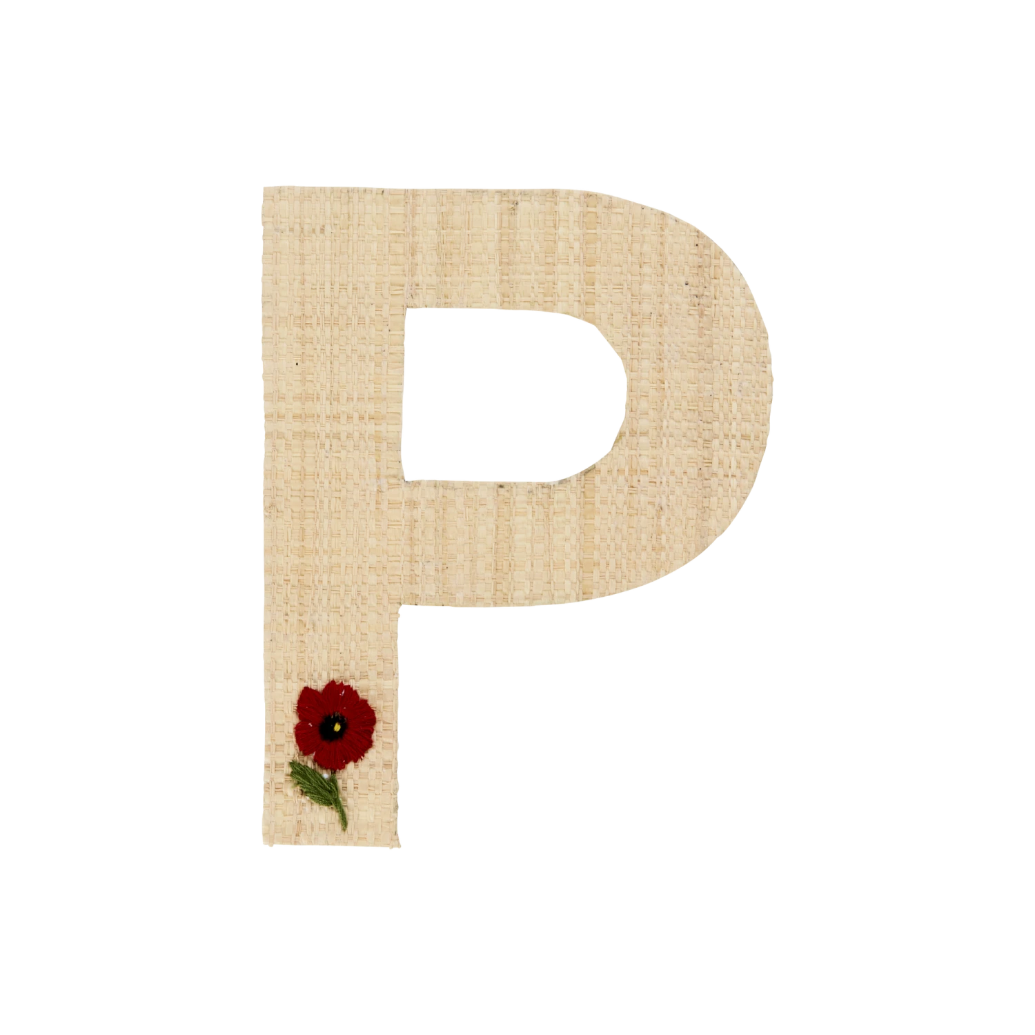 Super cute P in natural colored raffia with a small, embroidered flower. Our raffia letters have a sticky backside, so you can hang them anywhere you want… doors, closets or even raffia baskets! Mix and match the letters and write whatever you want… or assign each family member their own basket in the hallway – the sky is the limit. The letters are handmade from the natural and sustainable material raffia, so you will never find two identical letters – isn’t that just charming?!