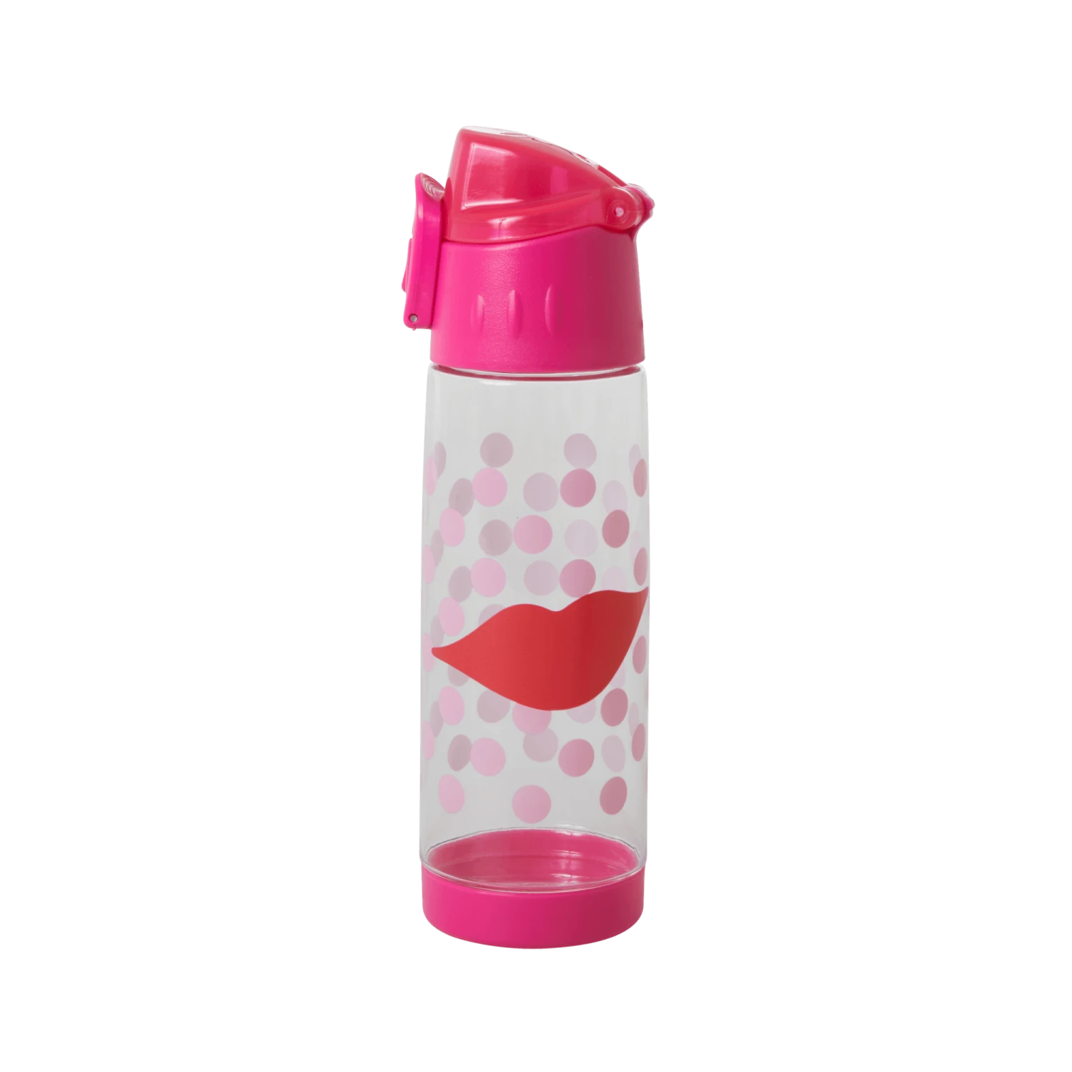 Thirsty on the go? With this cute kids drinking bottle with our Kiss print you can easily bring something to drink on the move… It comes with a practical straw that pops up when opening the lid. Easy to use for small fingers. And to make it even easier you wash the entire drinking bottle in the dishwasher when it needs cleaning. Does the beverage needs to be quickly cooled down – then put the drinking bottle in the freezer, as it is also freezer safe. It contains 500ml.
