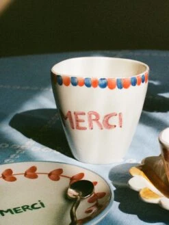 Ceramic Oval Cup With Hand Painted Merci – 10.1 Oz(Ceramic Oval Cup With Hand Painted Merci 10 1 Oz)