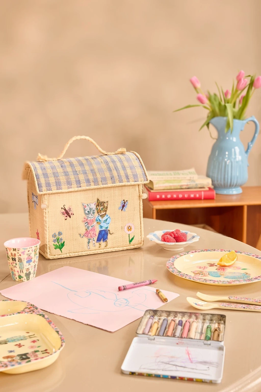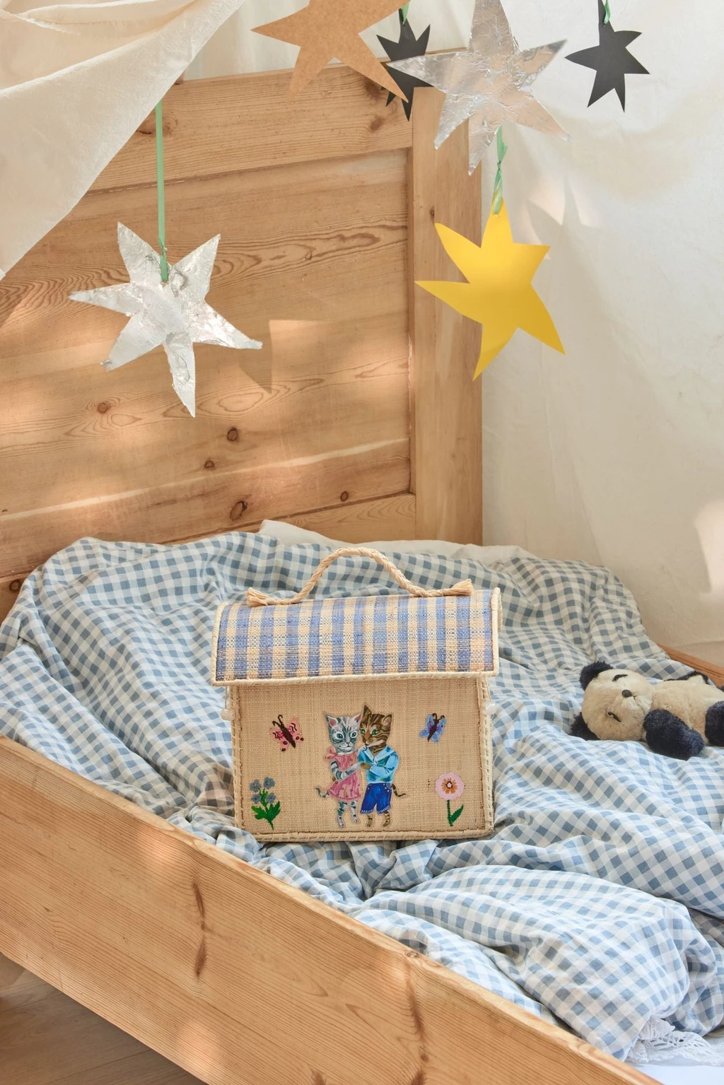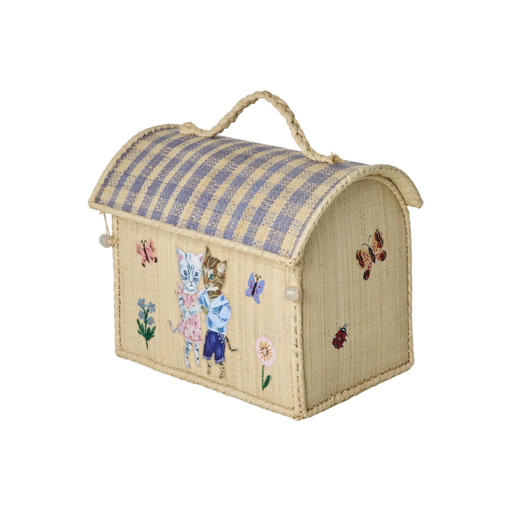 Can’t get enough of our raffia houses? Good news, we made matching bags for the little ones! Like our houses the bags are also made of the natural and sustainable material raffia. This one is with a sweet butterfly theme – completed with a convenient handle on top of the lid. Perfect for your little ones to carry all their treasures, making every day a little more magical.