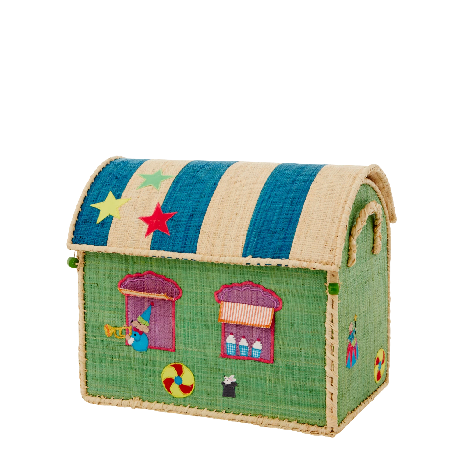 This product is handmade in the amazing natural material, raffia. Raffia fibers come from palm fronds and all RICE raffia products come from Madagascar, which also is the place where the history of RICE began. Our raffia baskets and raffia houses were some of our very first products. The production takes place in two villages in the mountains of Madagascar and supports more than 300 families on the Red Island.
