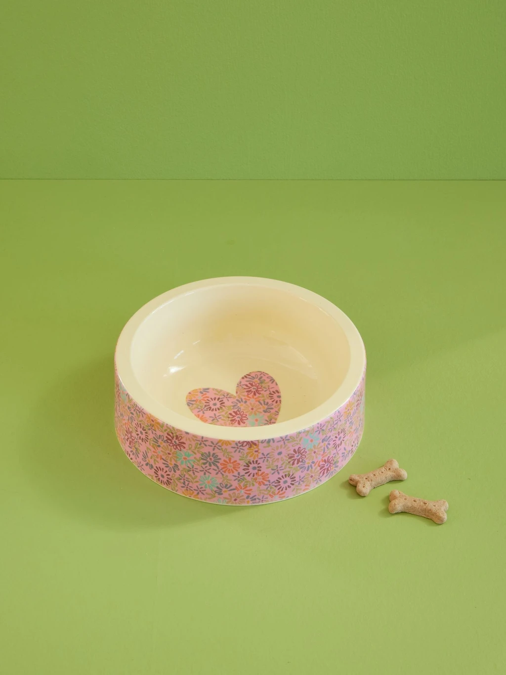 Cute melamine pet bowl with a soft pink flower print and a heart print on the bottom – for the furry members of the family. The bowl is not only gorgeous to look at, but it’s also practical… perfect for both food and water and can be used both indoor and outdoor.