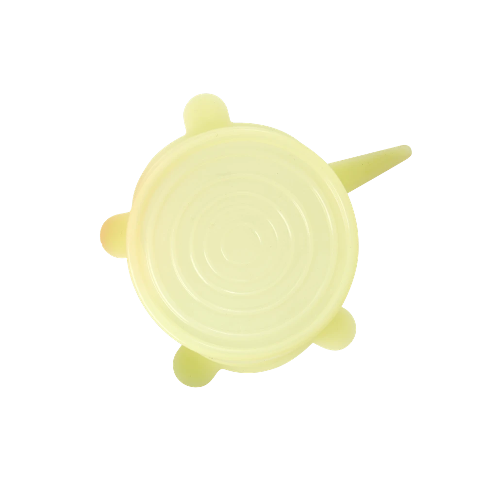 Silicone Lid for Small Melamine Bowl in assorted colors: Dark Mint, Hot Pink and Soft Yellow.