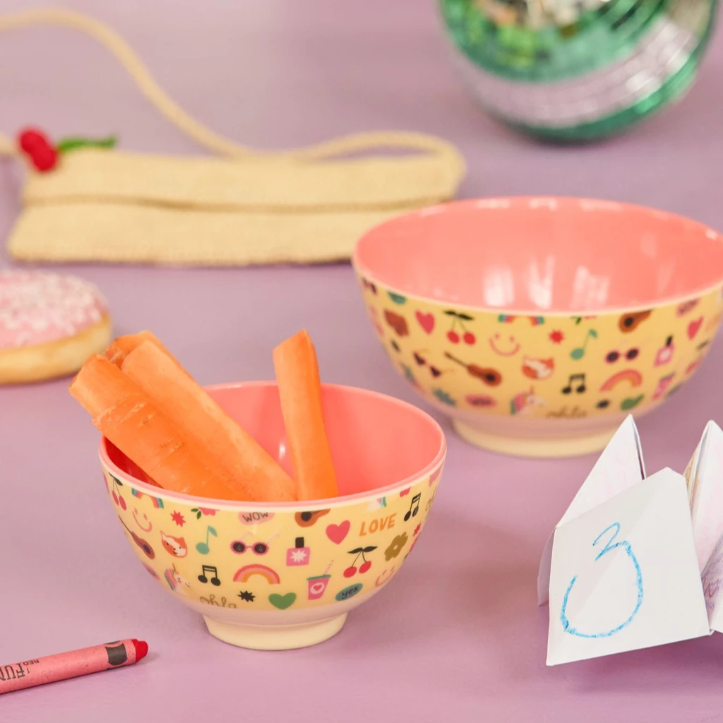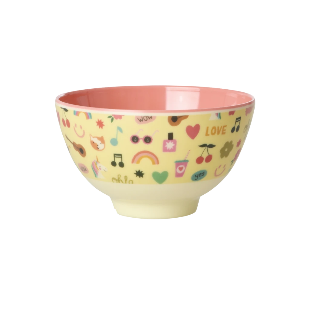 Small Kids Bowl – Soft Yellow – Unicorn Love Print(Small Kids Bowl Soft Yellow Unicorn Love Print)