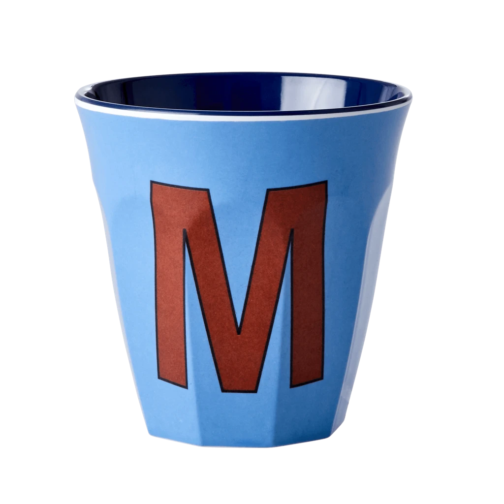 Two Melamine Cups – Medium With Alphabet In Bluish Colors | Letter M(Two Melamine Cups Medium With Alphabet In Bluish Colors Letter M)